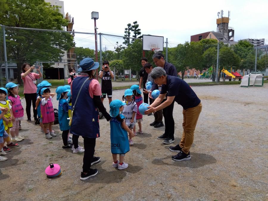 6月13日、沖ノ橋認定こども園 サッカーボール贈呈式を行いました。