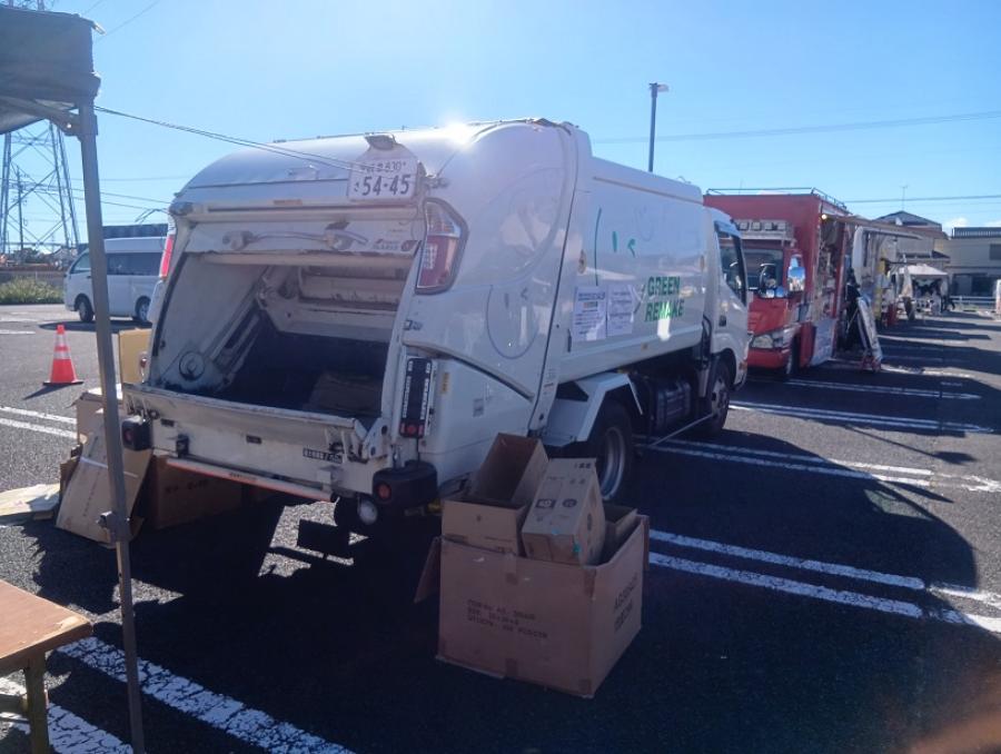 資源物のお持込、パッカー車による段ボールの積込体験では